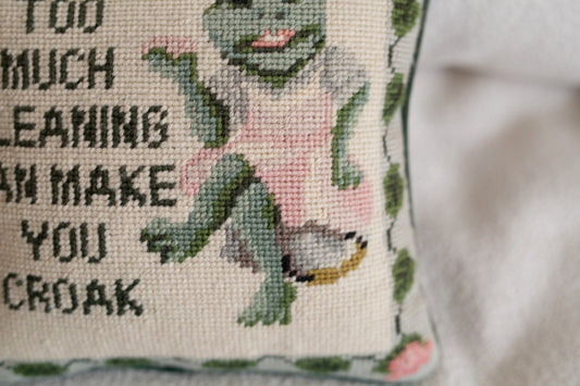 Sold outToo Much Cleaning Can Make You Croak Vintage Needlepoint Pillow