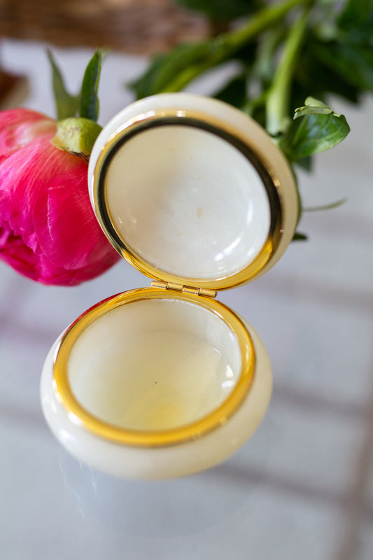 Sold outVintage Alabaster Round Trinket Box